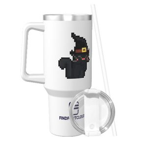 Pixel Art Theme 40oz Stainless Steel Insulated Bottle – Black Cat