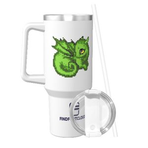 Pixel Art Theme 40oz Stainless Steel Insulated Bottle – Green Dragon
