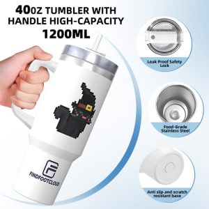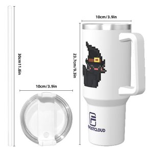 Pixel Art Theme 40oz Stainless Steel Insulated Bottle – Black Cat