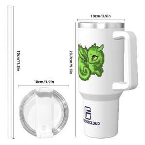 Pixel Art Theme 40oz Stainless Steel Insulated Bottle – Green Dragon